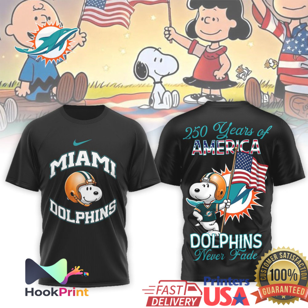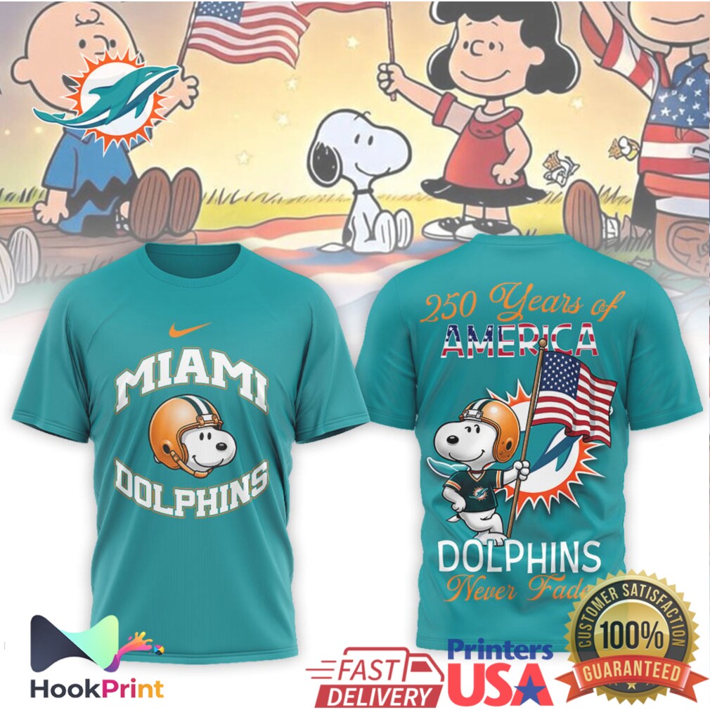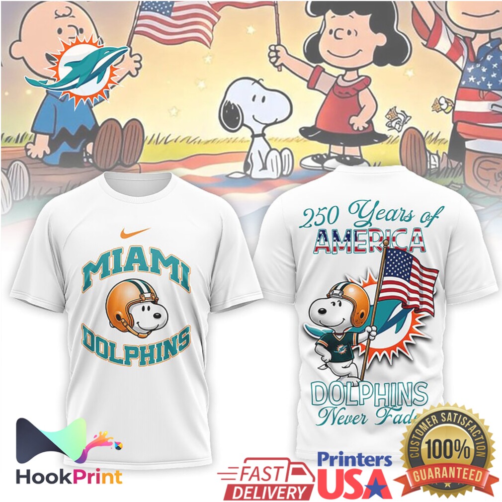 ▶️ About Miami Dolphins Snoopy 250 Years of America Never Fade Team T Shirt – 3D T-Shirt