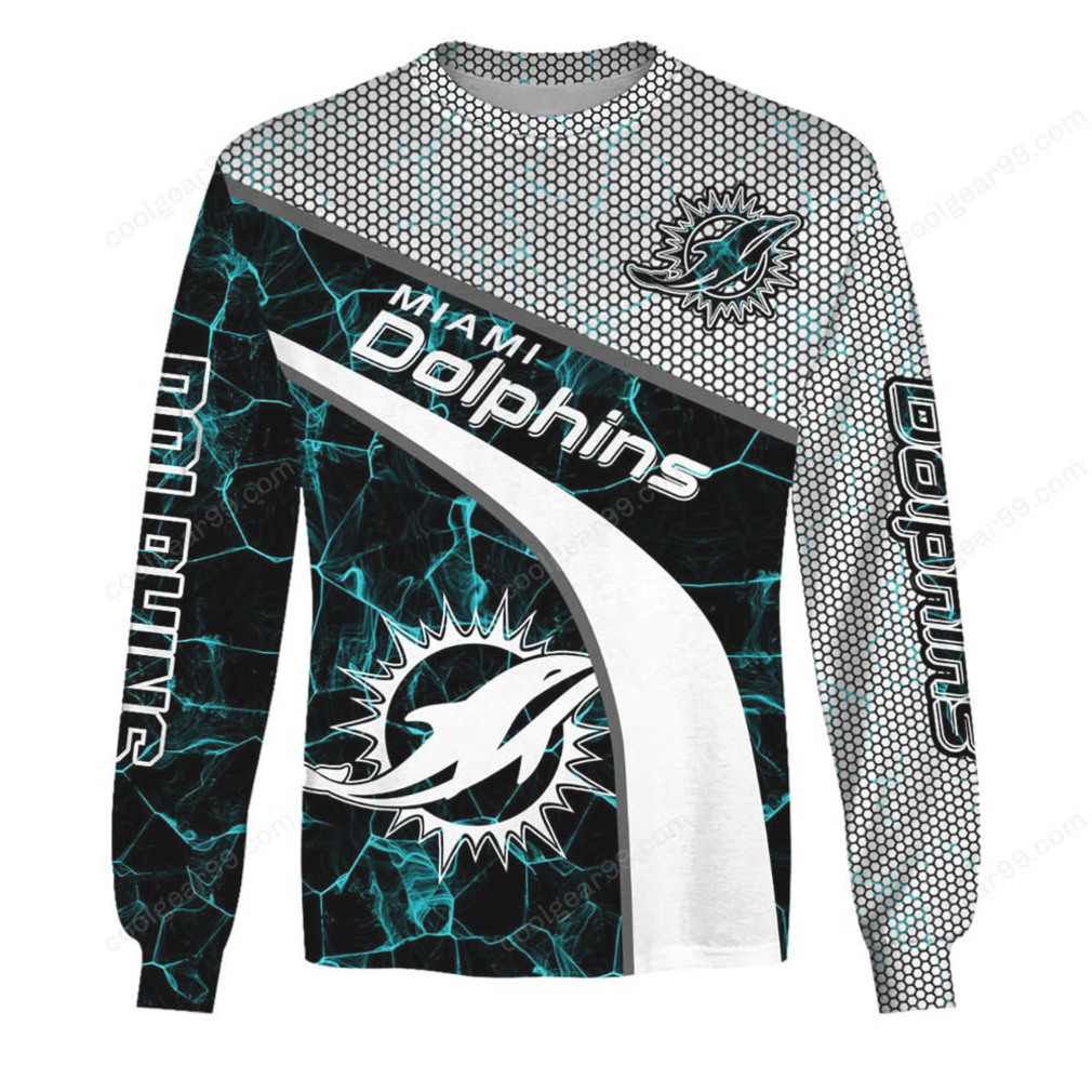 ()Miami Dolphins Teal & White Apparel Collection, V-neck, Sweater Hoodie and Long Sleeve tee