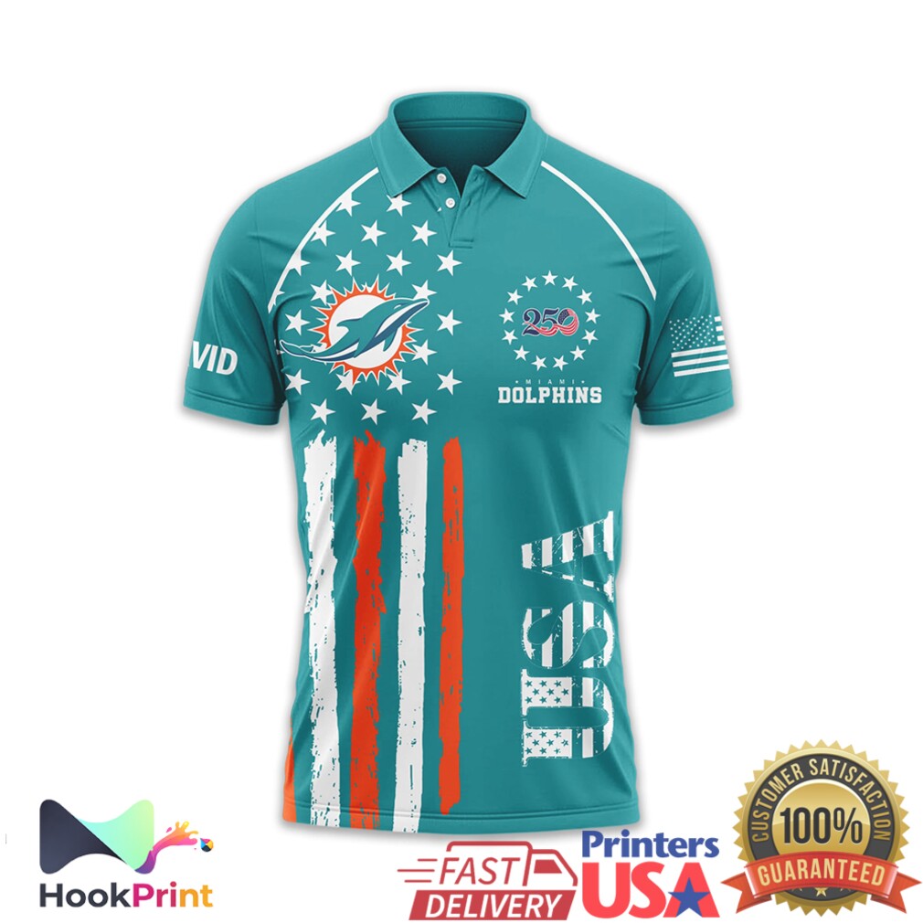 ▶️ About Miami Dolphins USA 250th Anniversary 1776 2026 Semiquincentennial Aqua Polo Shirt – 3D T-Shirt