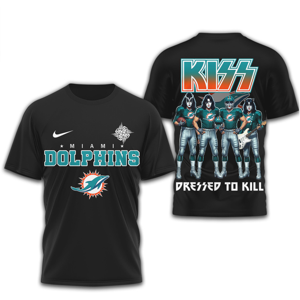▶️ About Miami Dolphins x KISS Band Mashup Dressed To Kill Sports T Shirt – 3D T-Shirt