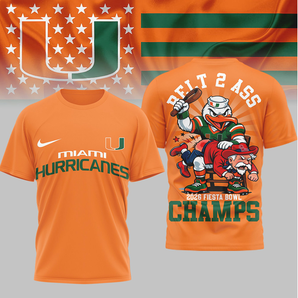 ()▶️ About Miami Hurricanes 2026 Fiesta Bowl Champs Belt 2 Ass Fan Shirt – 3D T-Shirt