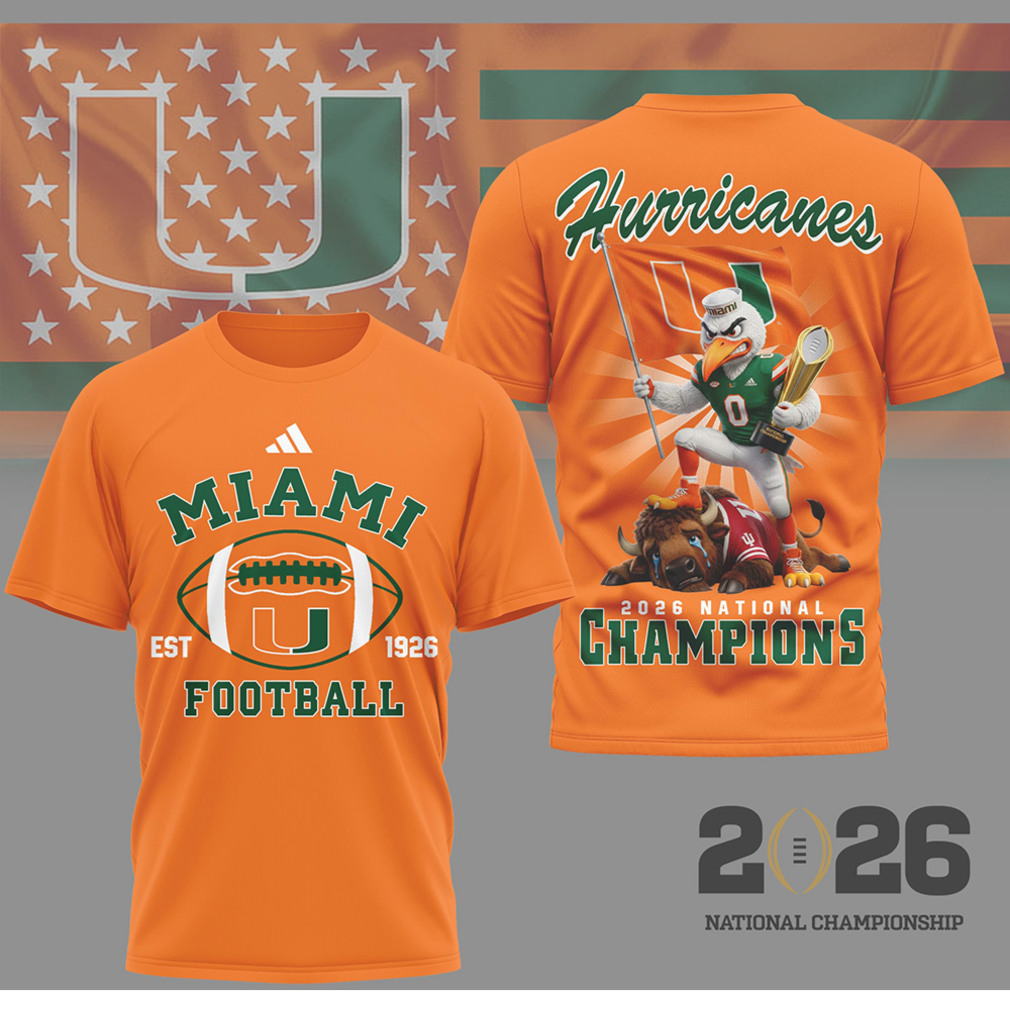 ()▶️ About Miami Hurricanes 2026 National Champions Sebastian The Ibis Mascot Football Victory T Shirt – 3D T-Shirt