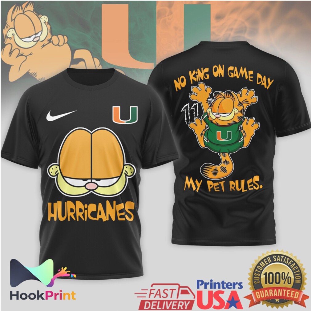 ▶️ About Miami Hurricanes Garfield No King On Game Day My Pet Rules T Shirt – 3D T-Shirt