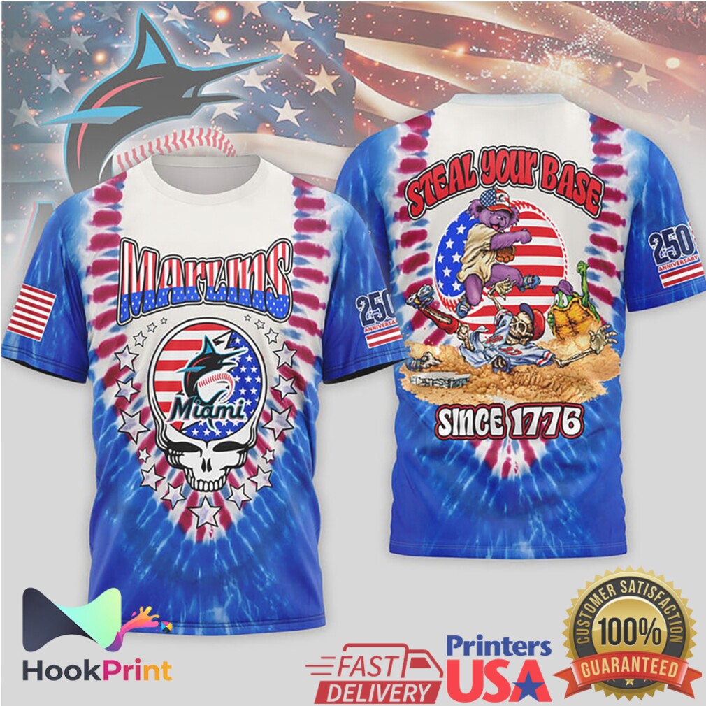 Miami Marlins Grateful Dead Steal Your Base Patriotic Tie Dye Shirt