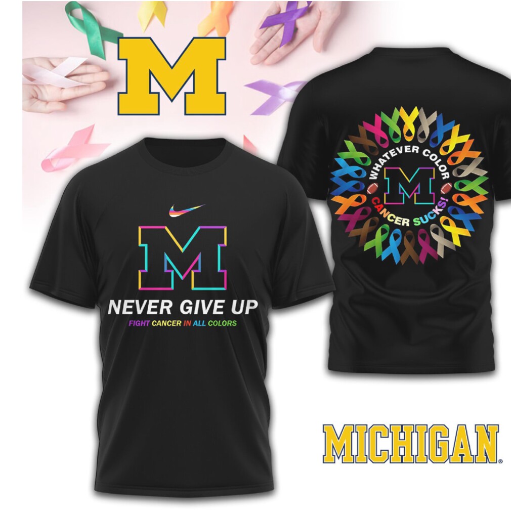 Michigan Wolverines Cancer Awareness Never Give Up Fight Cancer All Colors T Shirt