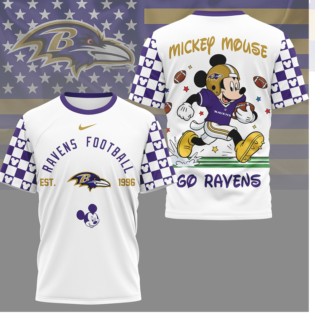 ▶️ About Mickey Mouse Baltimore Ravens Football Est 1996 Go Ravens T Shirt – 3D T-Shirt