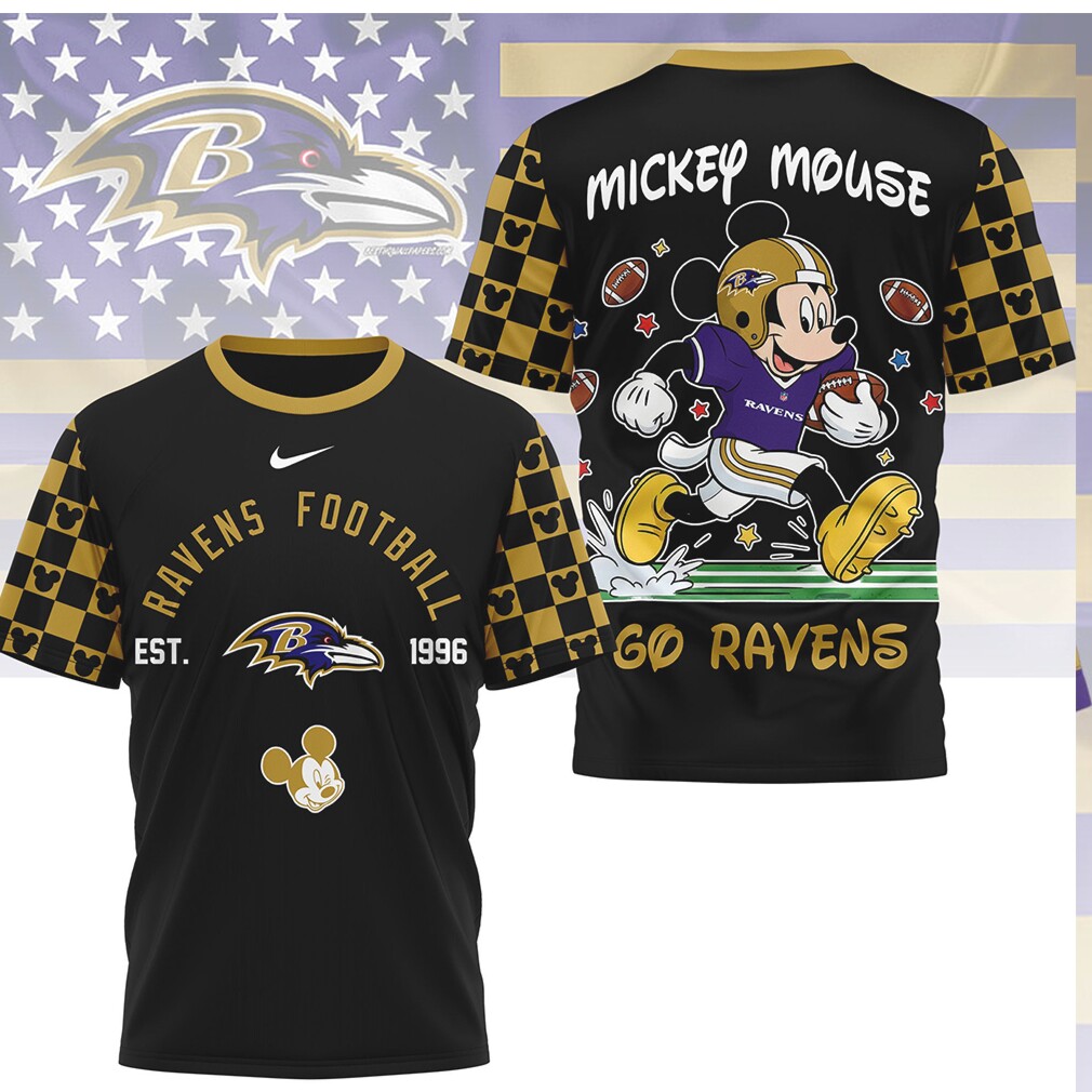 ▶️ About Mickey Mouse Baltimore Ravens Football Est 1996 Purple Gold T Shirt – 3D T-Shirt