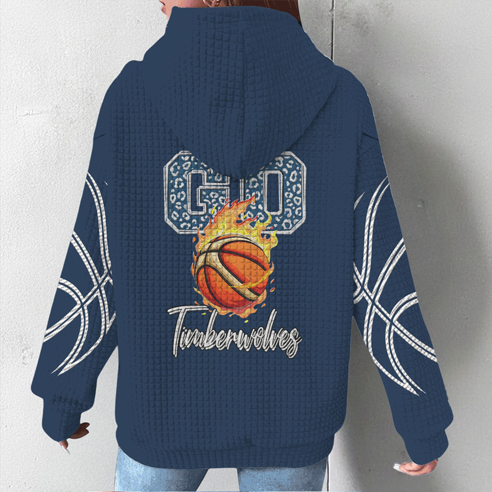 Minnesota Timberwolves Navy Waffle Knit Hoodie Vintage NBA Team Graphic Fan Pullover Hoodie