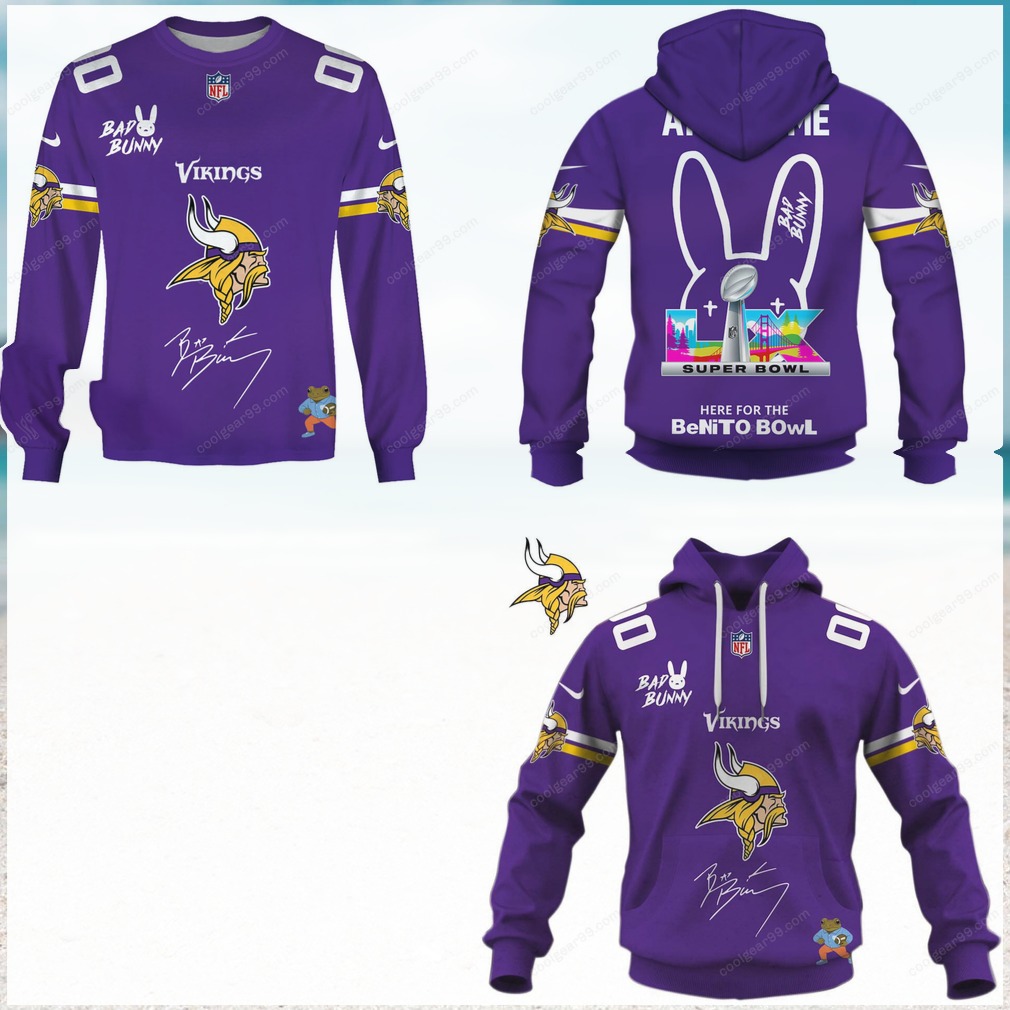 ()Minnesota Vikings Bad Bunny Super Bowl Benito Bowl Fan Hoodie, V-neck, Sweater Hoodie and Long Sleeve tee