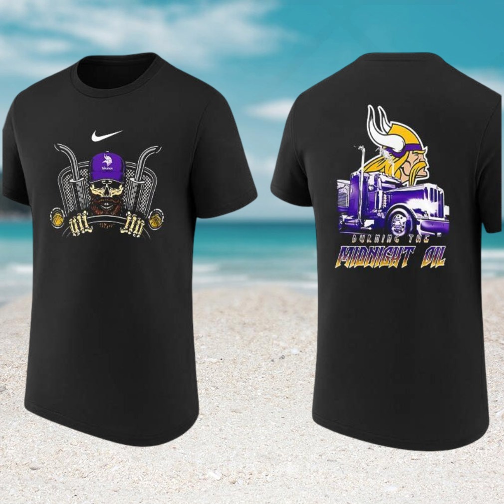 ()Minnesota Vikings Burning The Midnight Oil Trucker Skull Football Fan T Shirt, V-neck, Sweater Hoodie and Long Sleeve tee