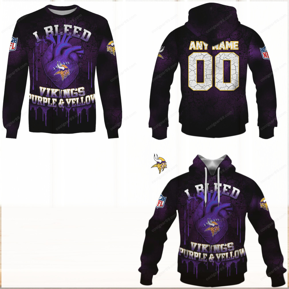 ▶️ About Minnesota Vikings 'I Bleed Purple & Yellow' Hoodie – 3D T-Shirt