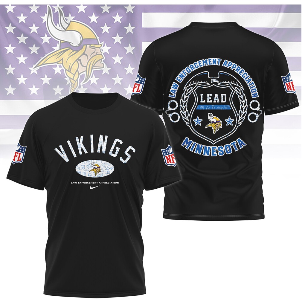 ()▶️ About Minnesota Vikings Law Enforcement Appreciation LEAD T Shirt – 3D T-Shirt