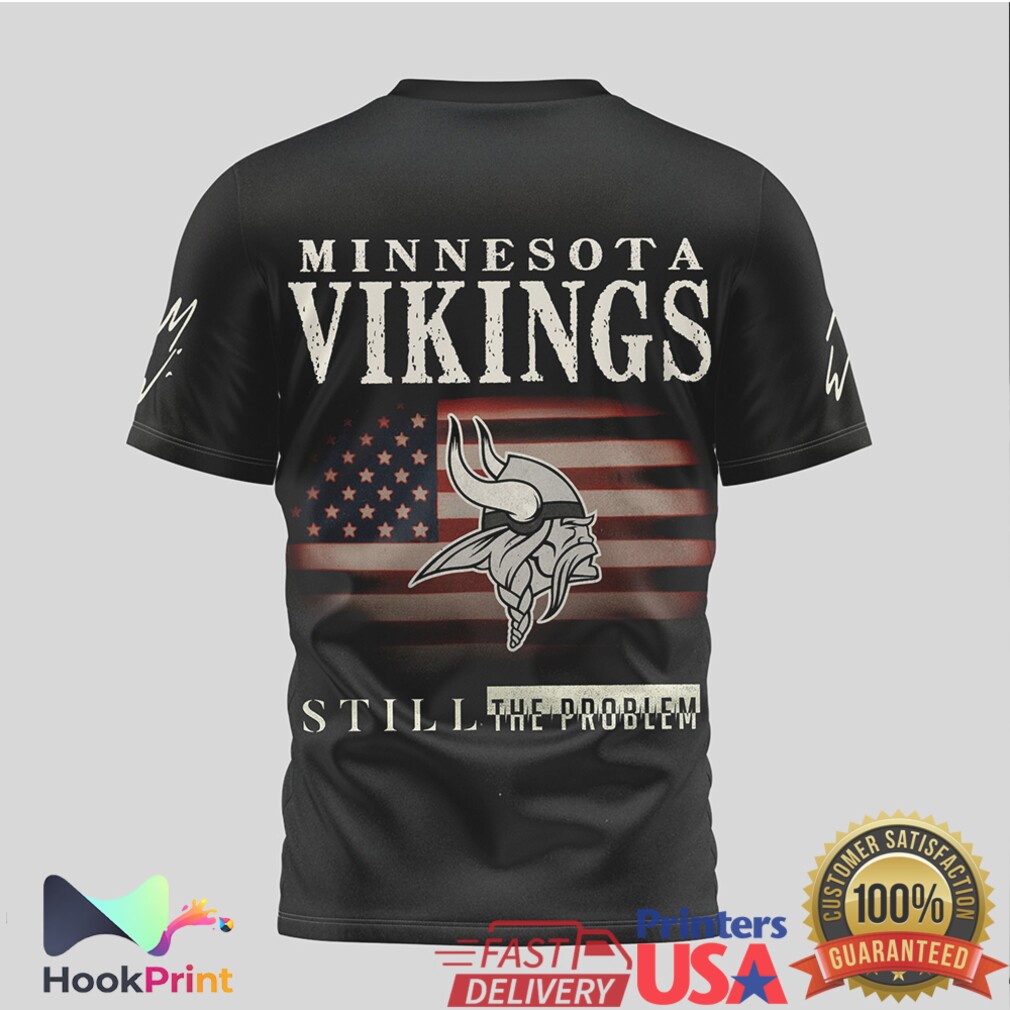 ▶️ About Minnesota Vikings Still The Problem Steer Skull American Flag T Shirt – 3D T-Shirt