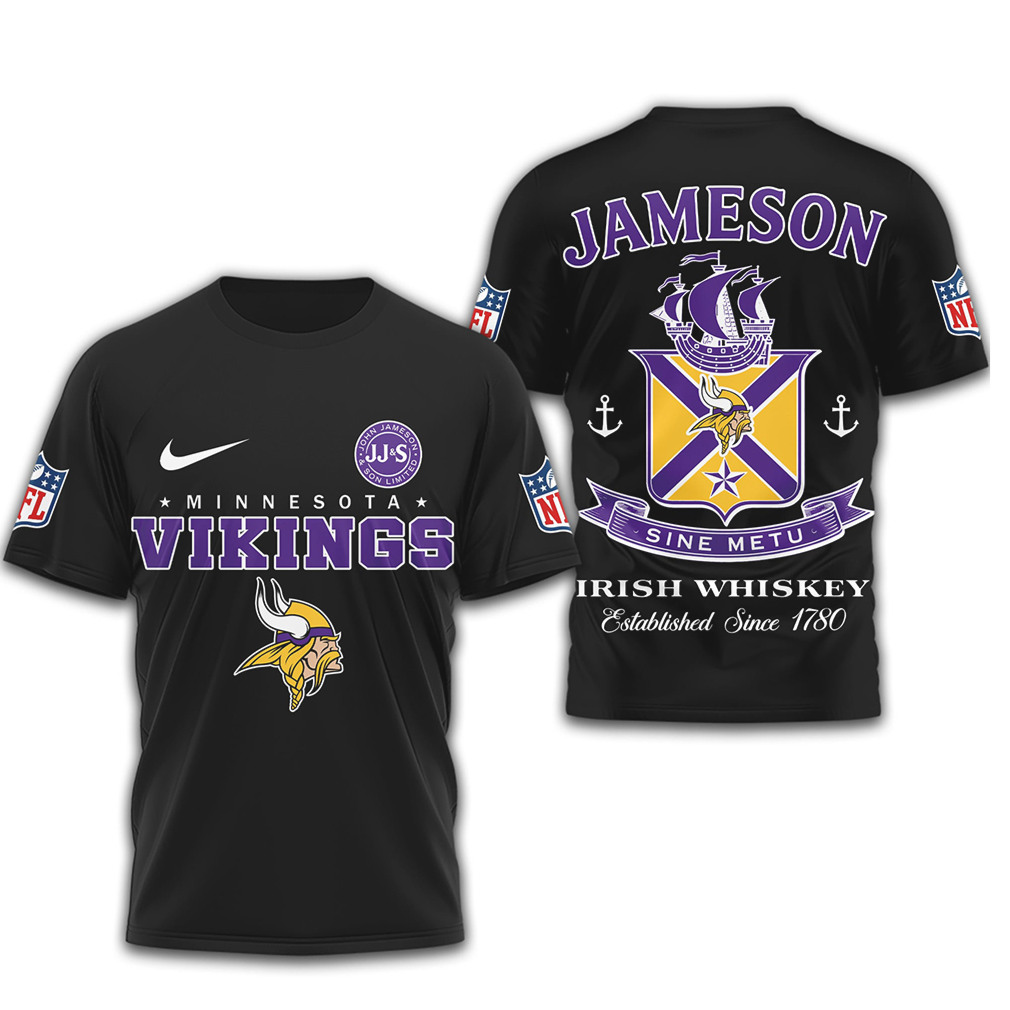 ▶️ About Minnesota Vikings x Jameson Irish Whiskey Sine Metu T Shirt – 3D T-Shirt