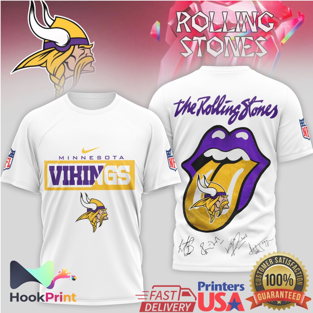 ▶️ About Minnesota Vikings x The Rolling Stones Tongue Logo Signature T Shirt – 3D T-Shirt