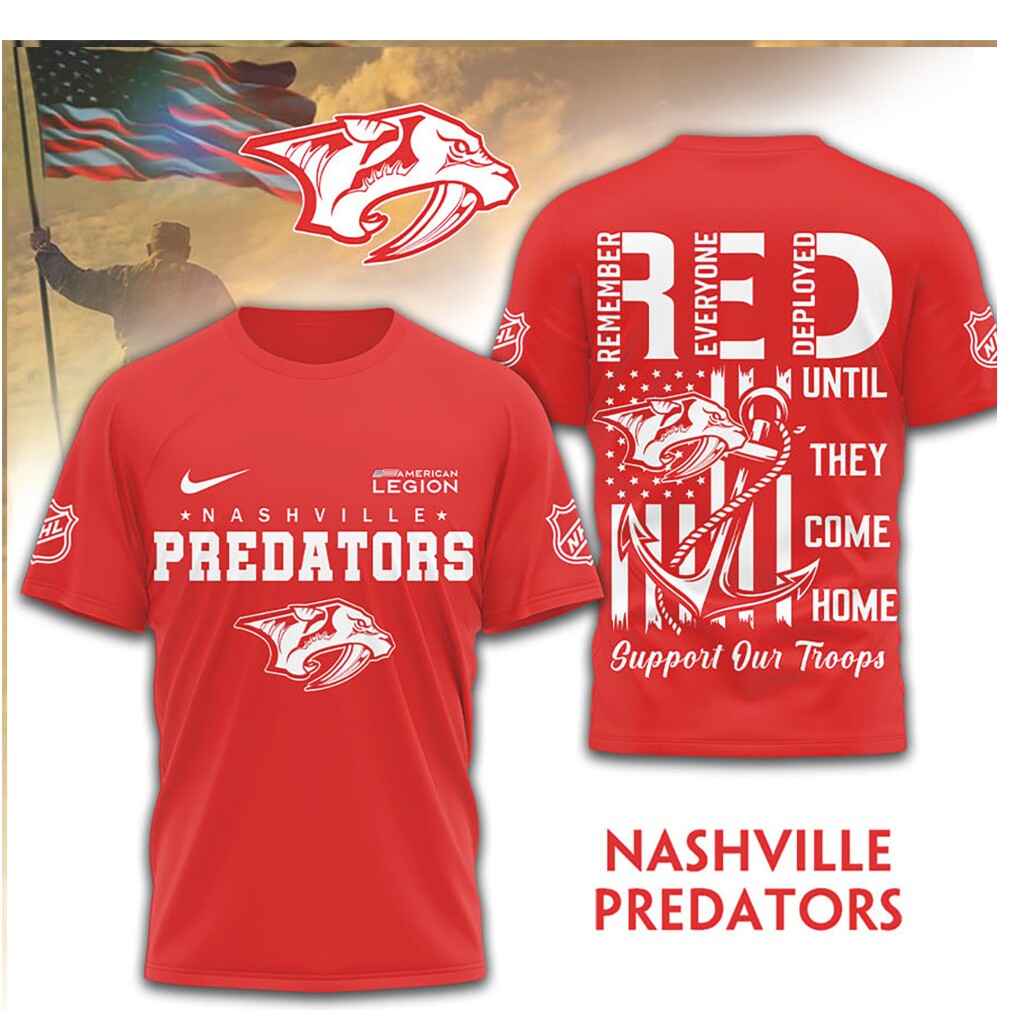 ()Nashville Predators RED Remember Everyone Deployed Support Our Troops T Shirt, V-neck, Sweater Hoodie and Long Sleeve tee