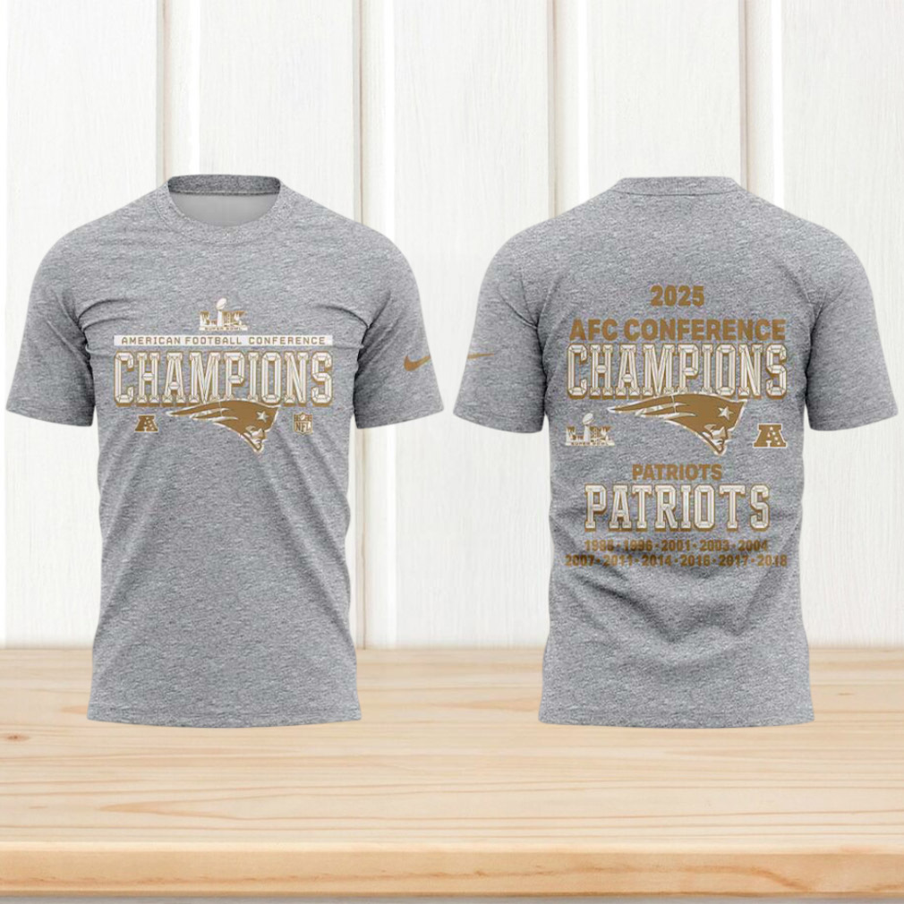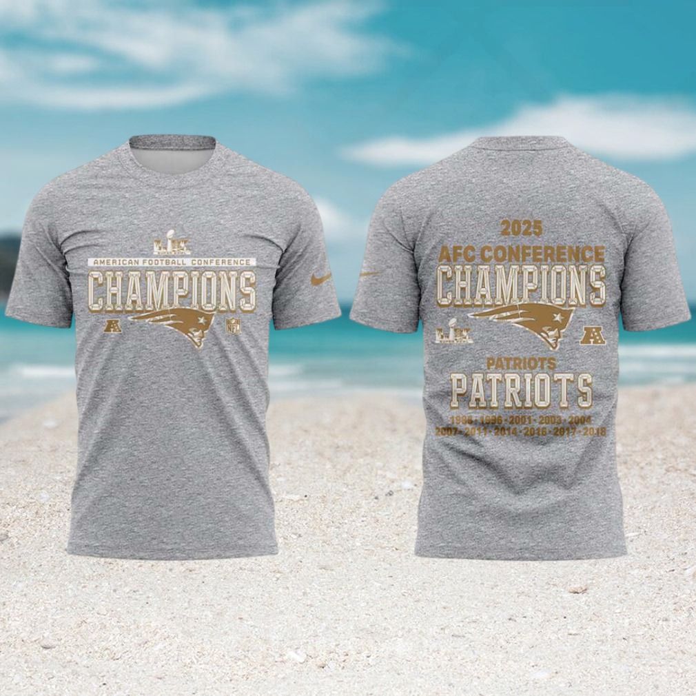 ()▶️ About New England Patriots 2025 AFC Conference Champions Gold Foil Grey Performance tshirt – 3D T-Shirt