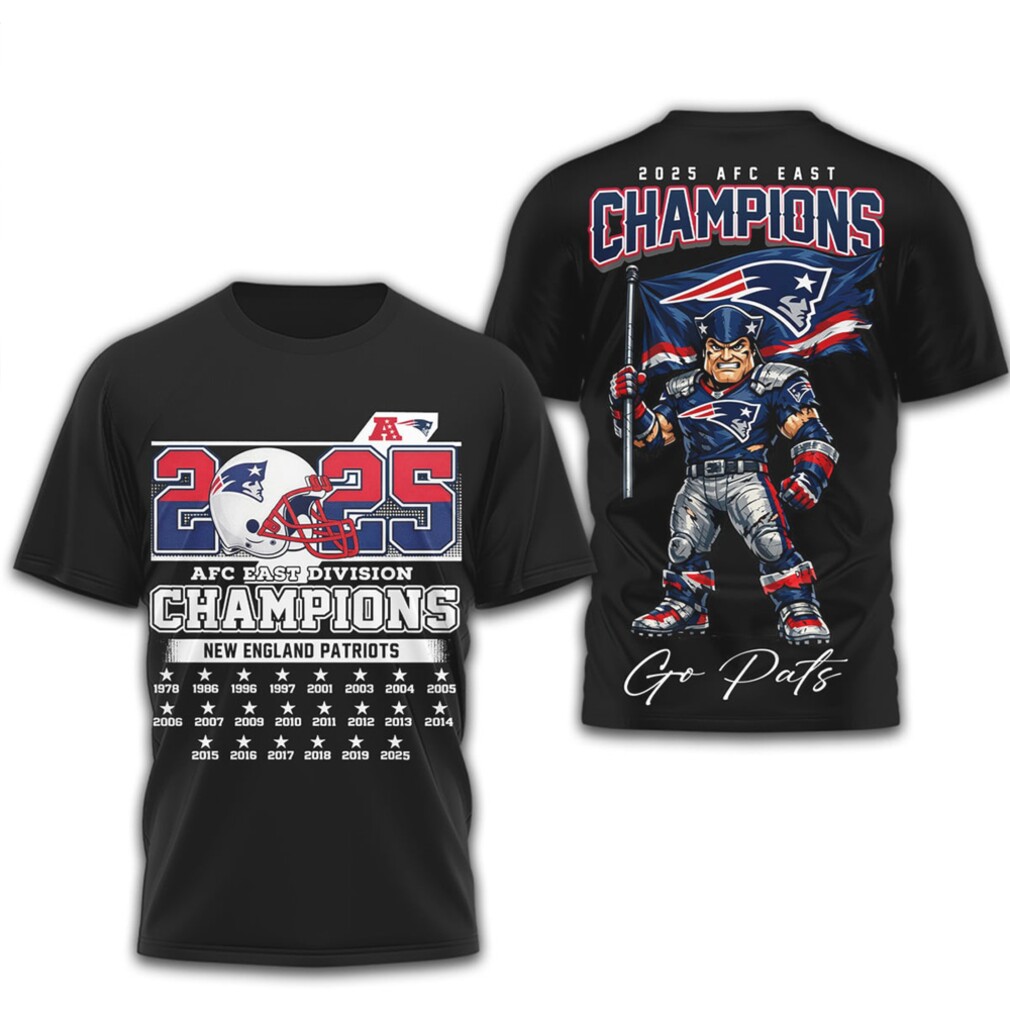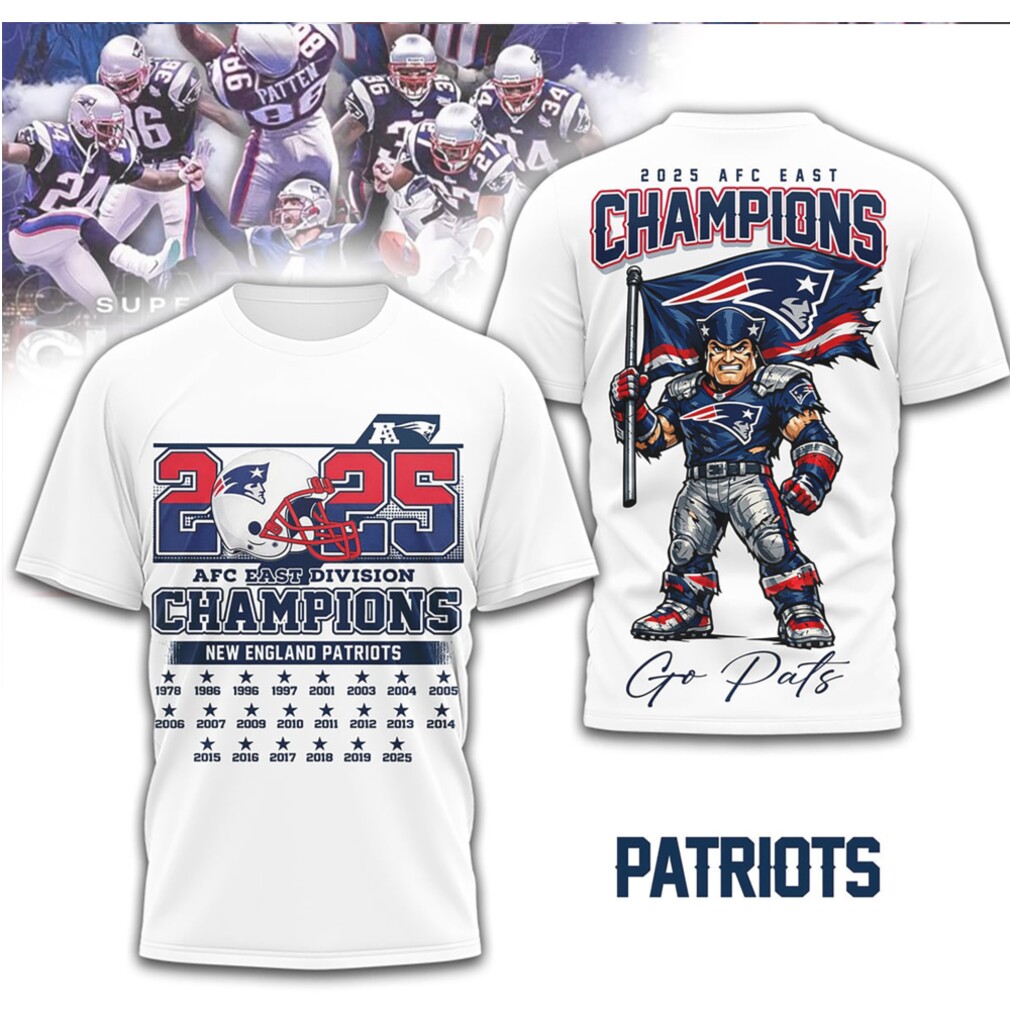 ()▶️ About New England Patriots 2025 AFC East Champions Division History Helmet Graphic Football Shirt – 3D T-Shirt