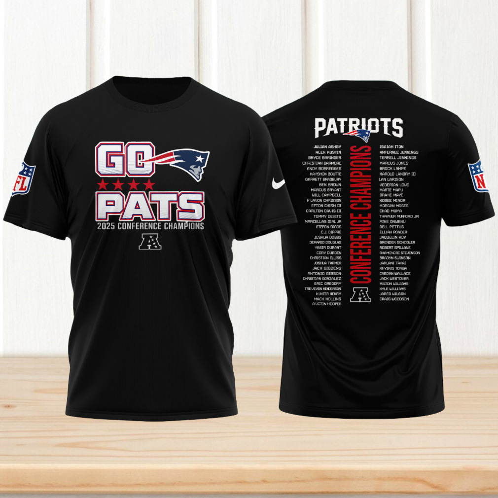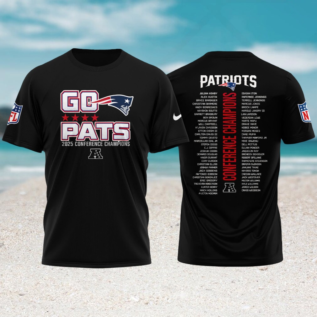 ()▶️ About New England Patriots 2025 Conference Champions Go Pats Roster Football Fan T Shirt – 3D T-Shirt