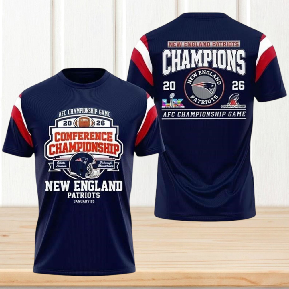 ()▶️ About New England Patriots AFC Conference Championship Game Day Navy Graphic Tee Football Shirt – 3D T-Shirt