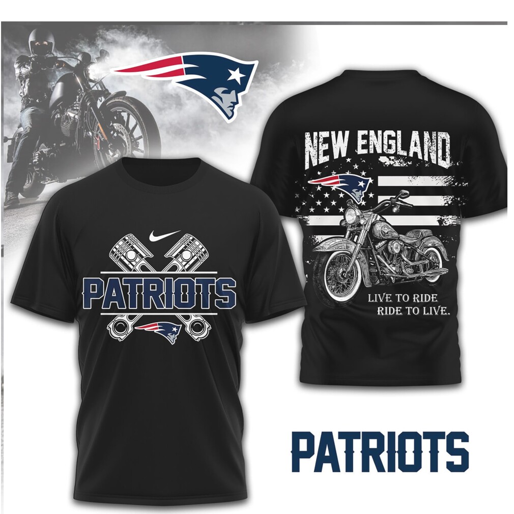 ▶️ About New England Patriots Biker Live to Ride American Flag NFL Shirt – 3D T-Shirt