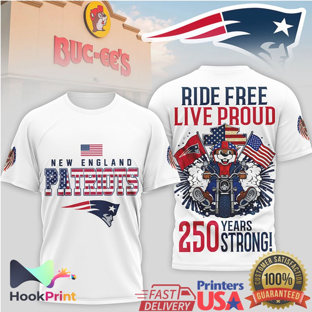 ▶️ About New England Patriots Buc ee's Mascot Ride Free Live Proud 250 Years Strong T Shirt – 3D T-Shirt