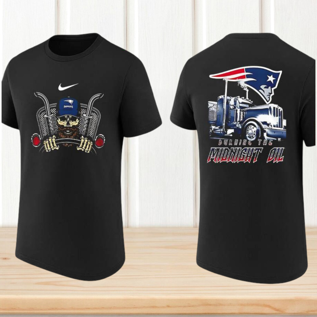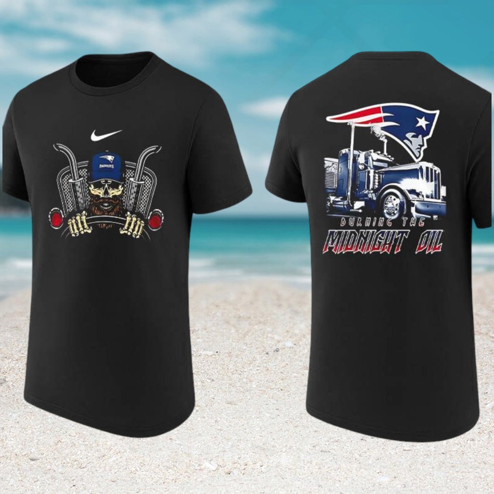 ()New England Patriots Burning The Midnight Oil Trucker Skull Football T Shirt, V-neck, Sweater Hoodie and Long Sleeve tee
