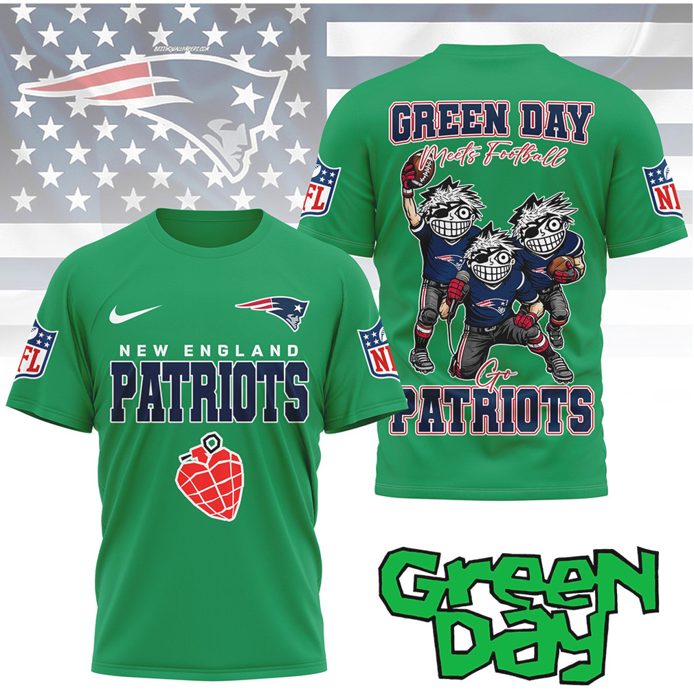 ()▶️ About New England Patriots “Green Day Meets Football” Music Fan Tee – 3D T-Shirt