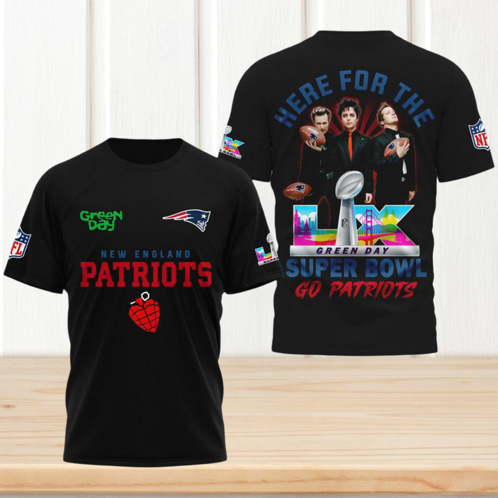 ()▶️ About New England Patriots Green Day Super Bowl LX T Shirt NFL Rock Band Fan T Shirt – 3D T-Shirt