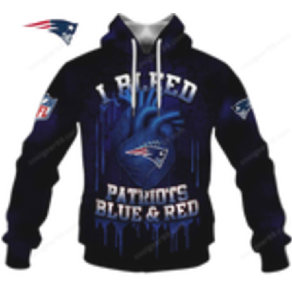 ()New England Patriots I Bleed Blue & Red Custom Name & Number Apparel Shirt, V-neck, Sweater Hoodie and Long Sleeve tee