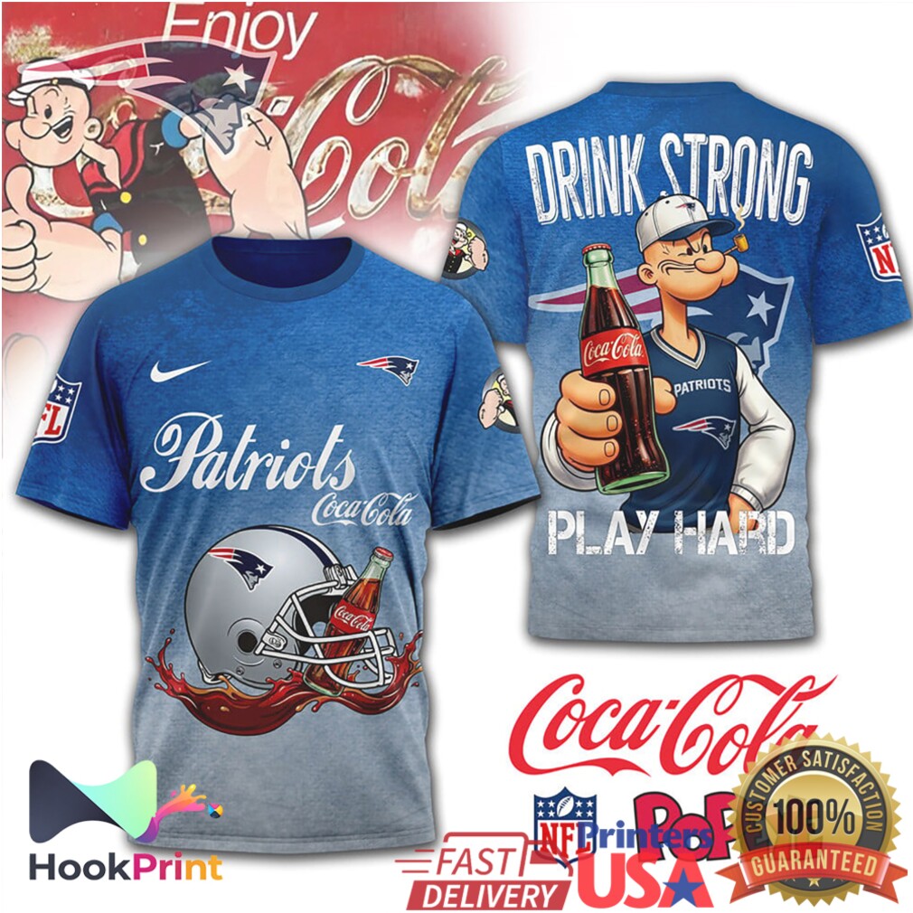 ▶️ About New England Patriots Popeye Drink Strong Play Hard Coca Cola NFL T Shirt – 3D T-Shirt