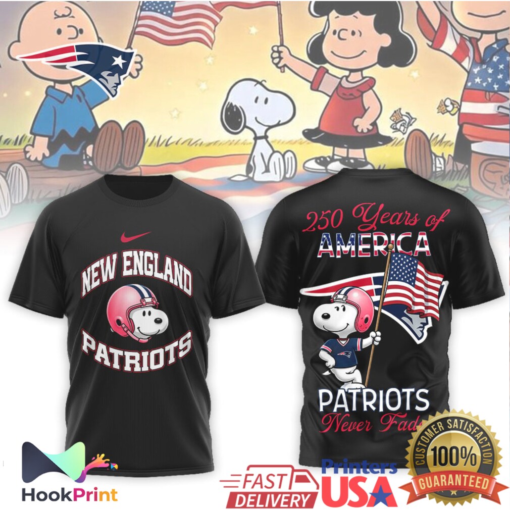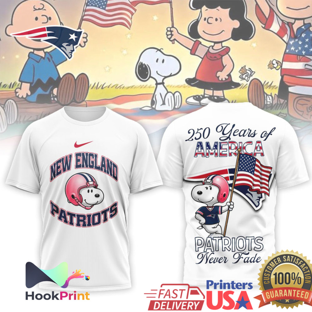 New England Patriots Snoopy 250 Years of America NFL T Shirt