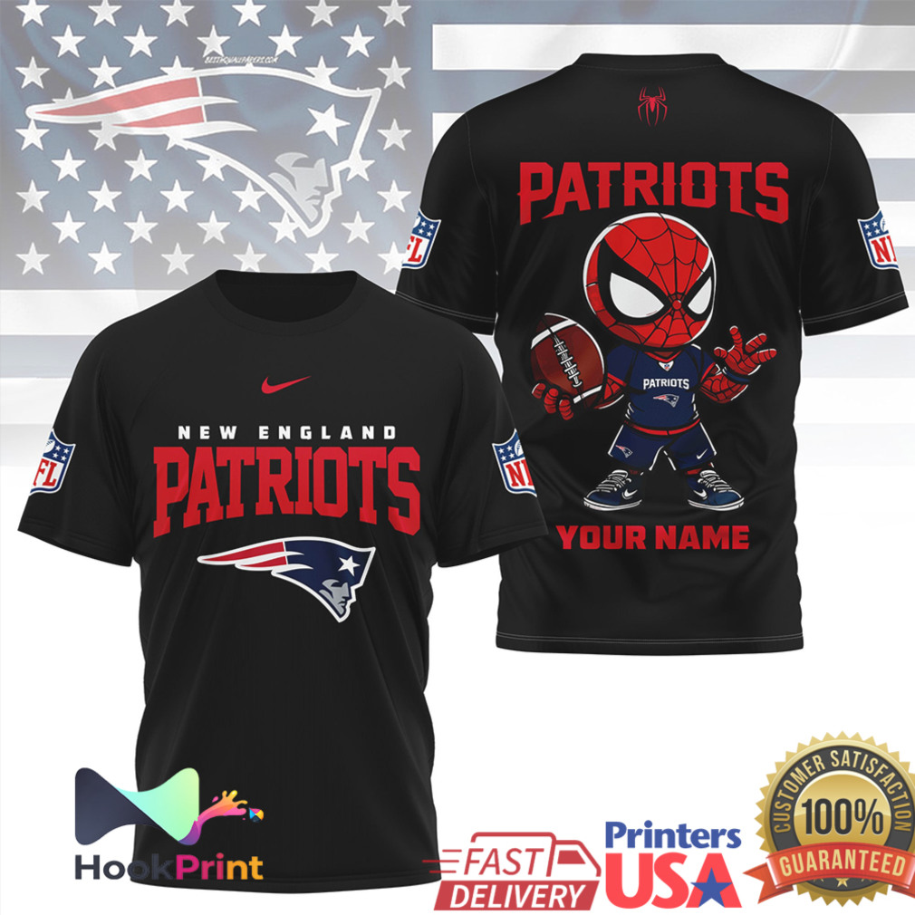 ▶️ About New England Patriots Spider Man Custom Name Mascot NFL Football T Shirt – 3D T-Shirt