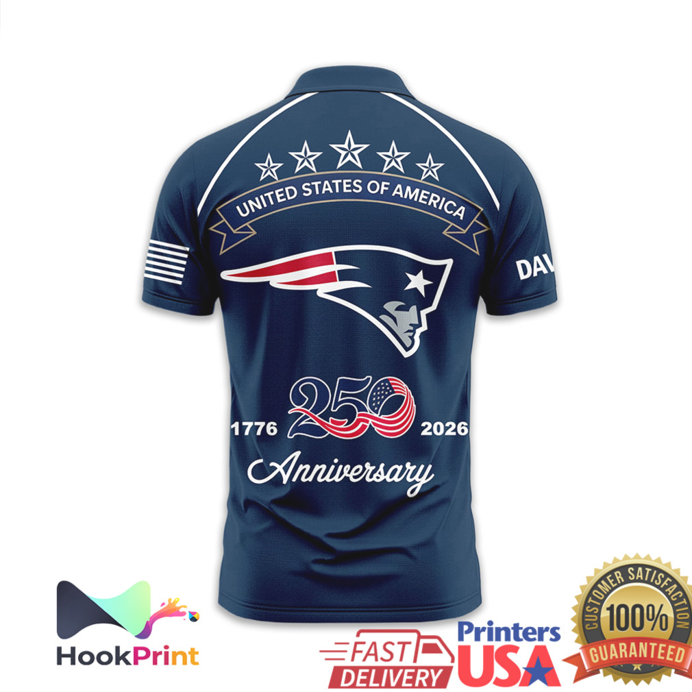 New England Patriots USA 250th Anniversary 1776 2026 Patriotic Polo Shirt