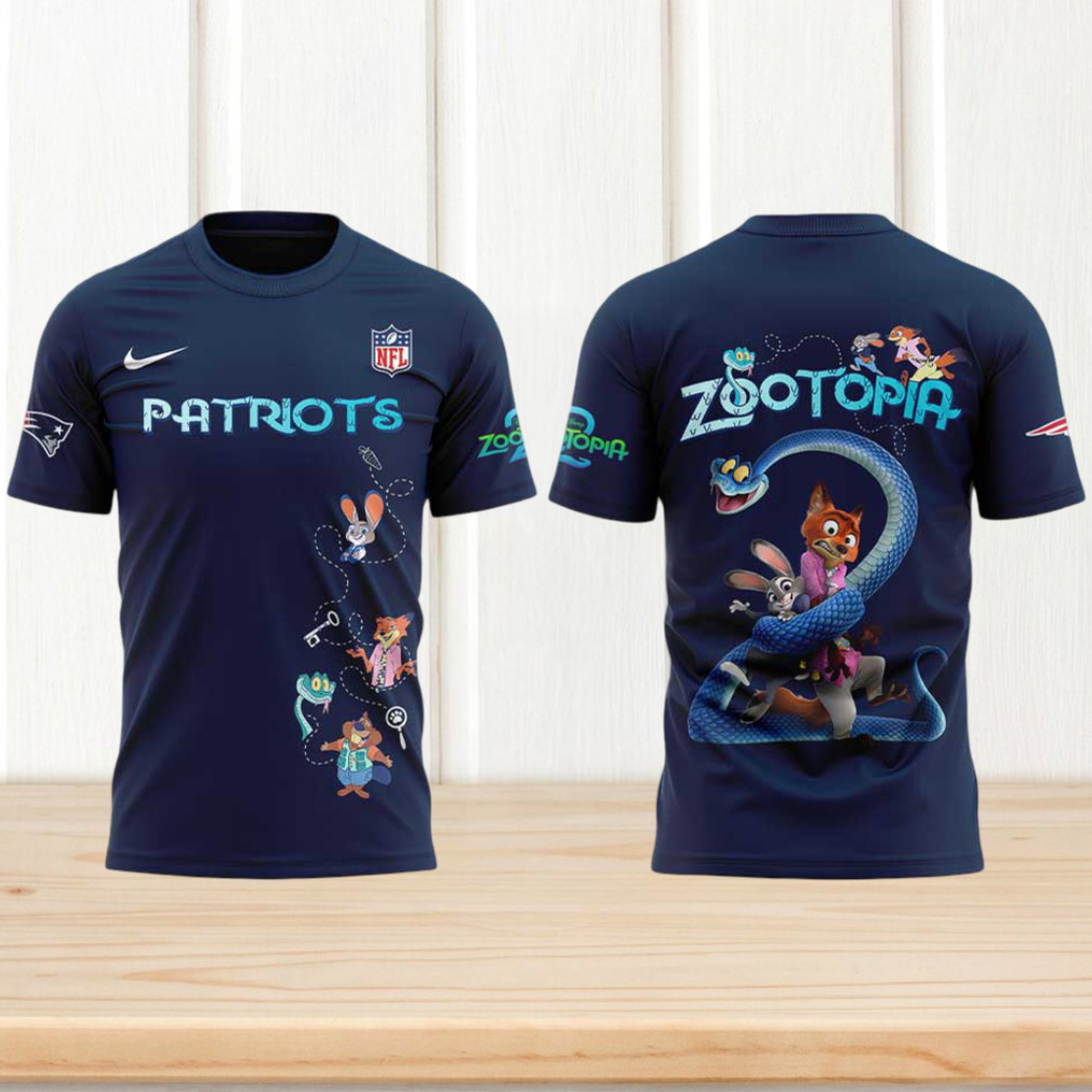 ()▶️ About New England Patriots Zootopia Movie Character Crossover Blue NFL Fan T Shirt – 3D T-Shirt