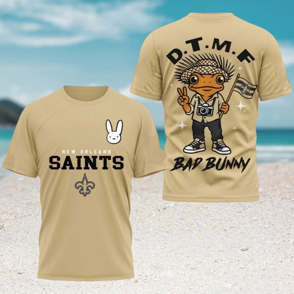 ()▶️ About New Orleans Saints Bad Bunny DTMF Frog Gold Football Fan T Shirt – 3D T-Shirt