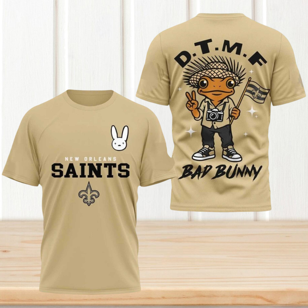 New Orleans Saints Bad Bunny DTMF Frog Gold Football Fan T Shirt