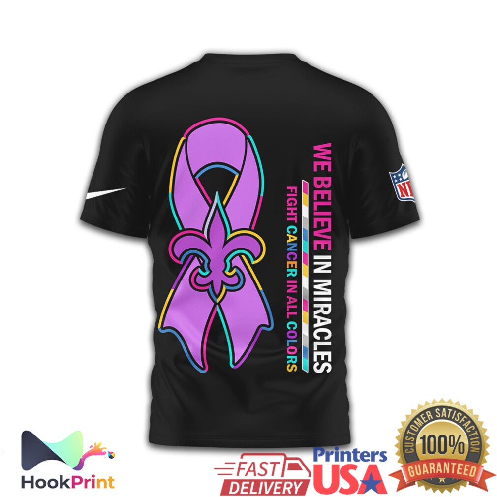 ▶️ About New Orleans Saints Crucial Catch Intercept Cancer We Believe In Miracles T Shirt – 3D T-Shirt