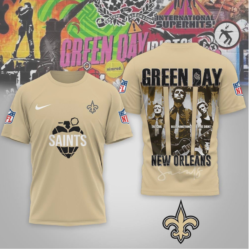 ()▶️ About New Orleans Saints Green Day Rock Band Mashup Nike Performance Football Fan Shirt – 3D T-Shirt