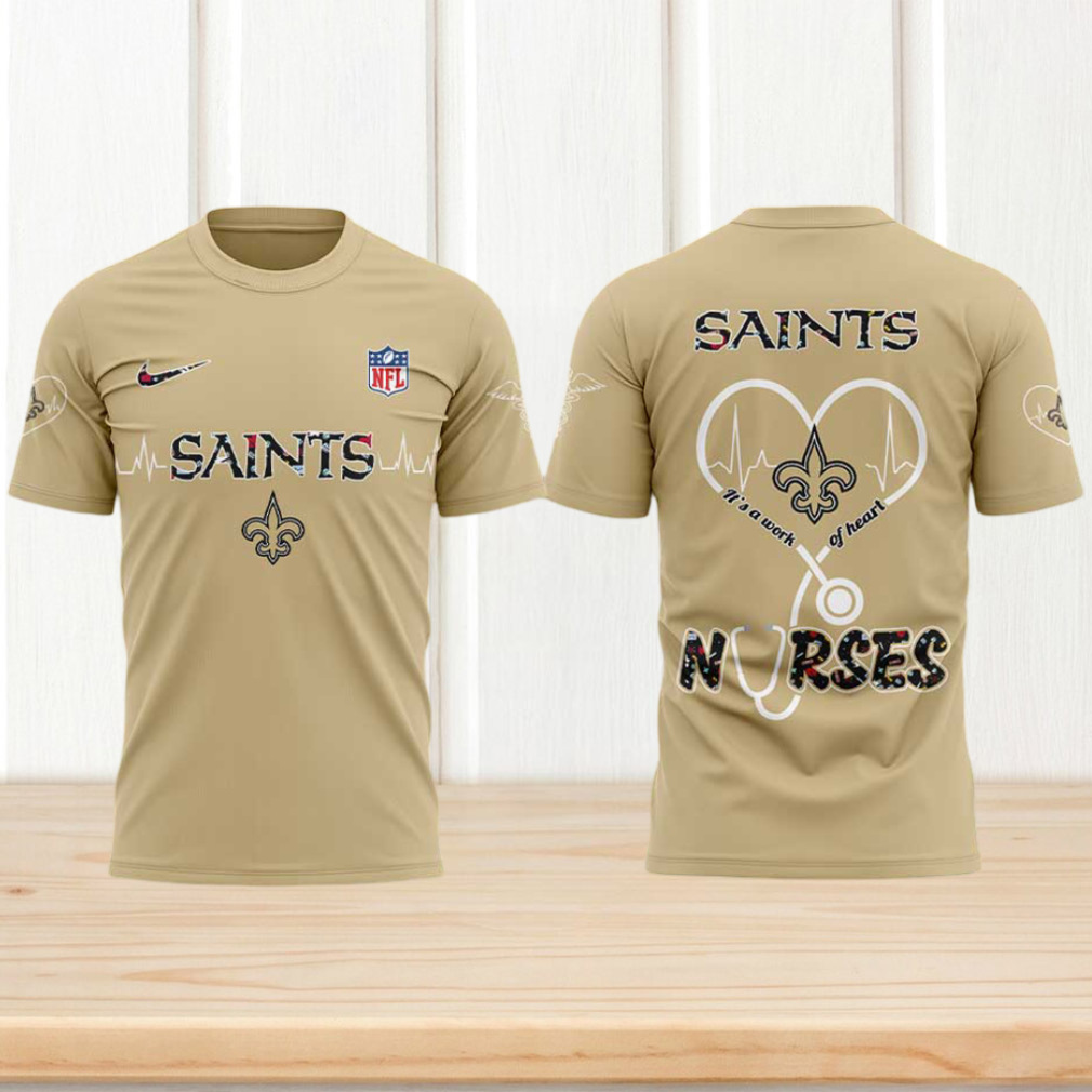 ()▶️ About New Orleans Saints Nurses Night 2025 Heart Stethoscope Gold NFL Performance Shirt – 3D T-Shirt