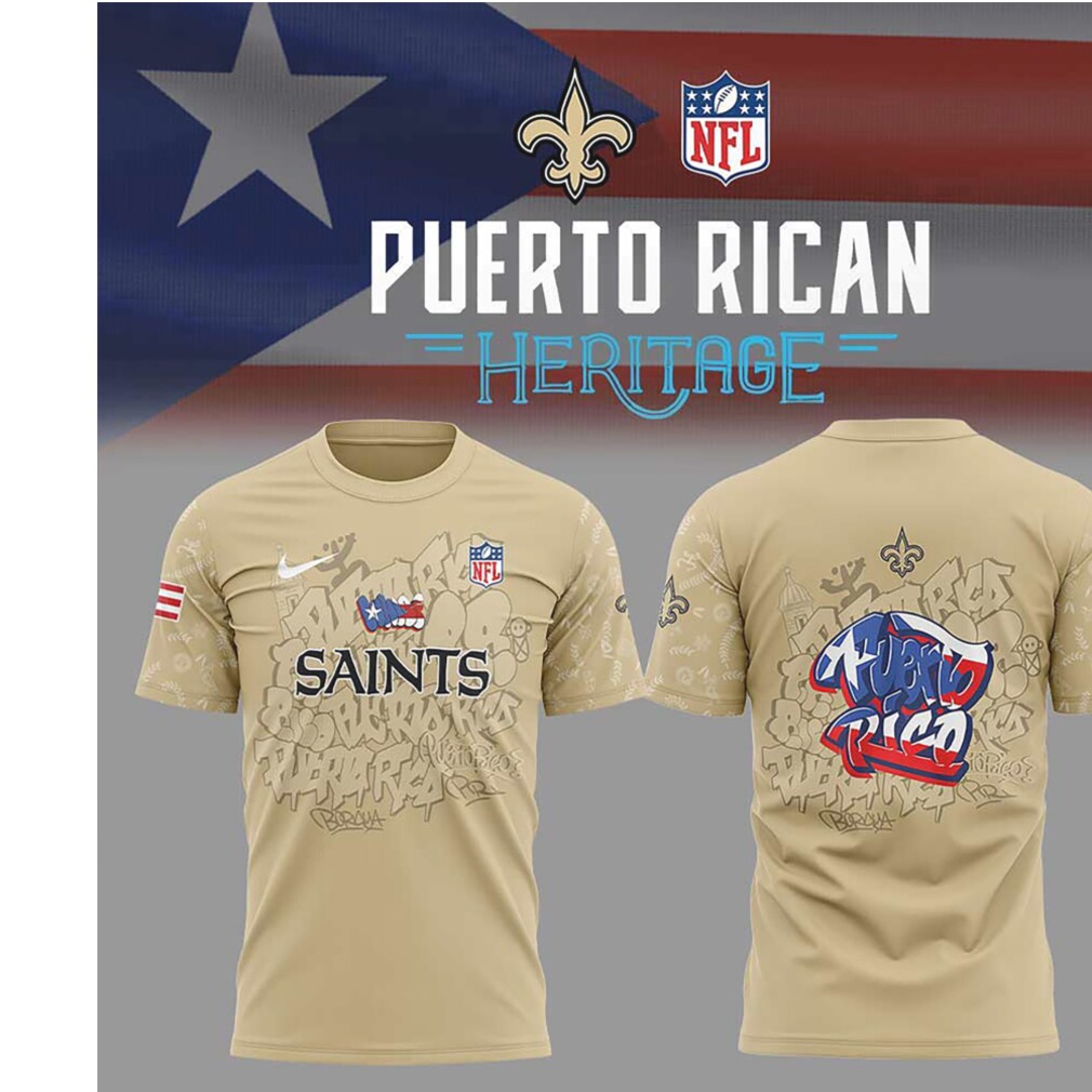 ()New Orleans Saints Puerto Rican Heritage NFL Gold Graffiti Style Fan T Shirt, V-neck, Sweater Hoodie and Long Sleeve tee