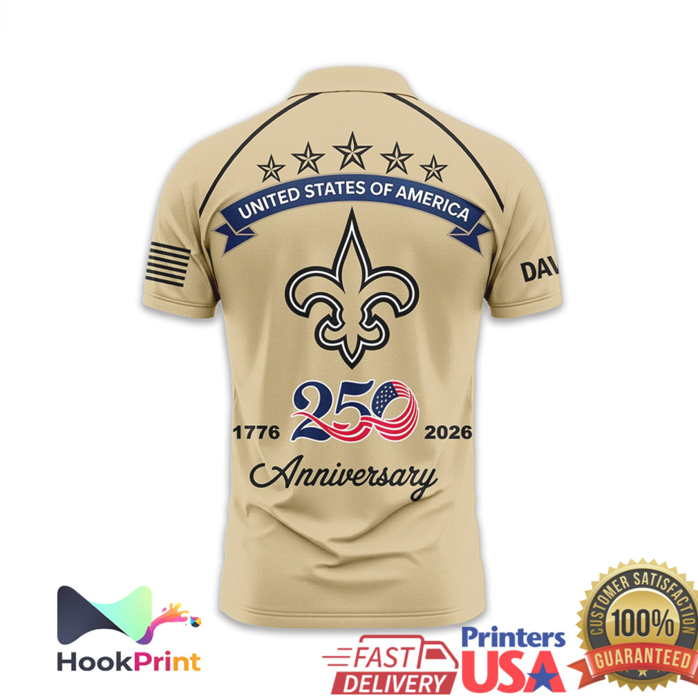 ▶️ About New Orleans Saints USA 250th Anniversary 1776 2026 Patriotic Polo Shirt – 3D T-Shirt