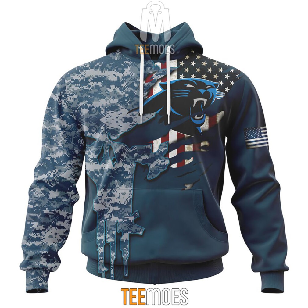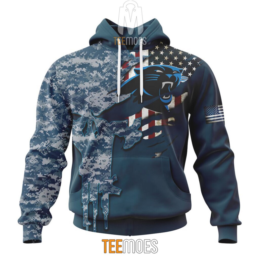 ▶️ About NFL Carolina Panthers Custom Name Number Navy Skull Camo Veteran Pullover Hoodie – 3D T-Shirt