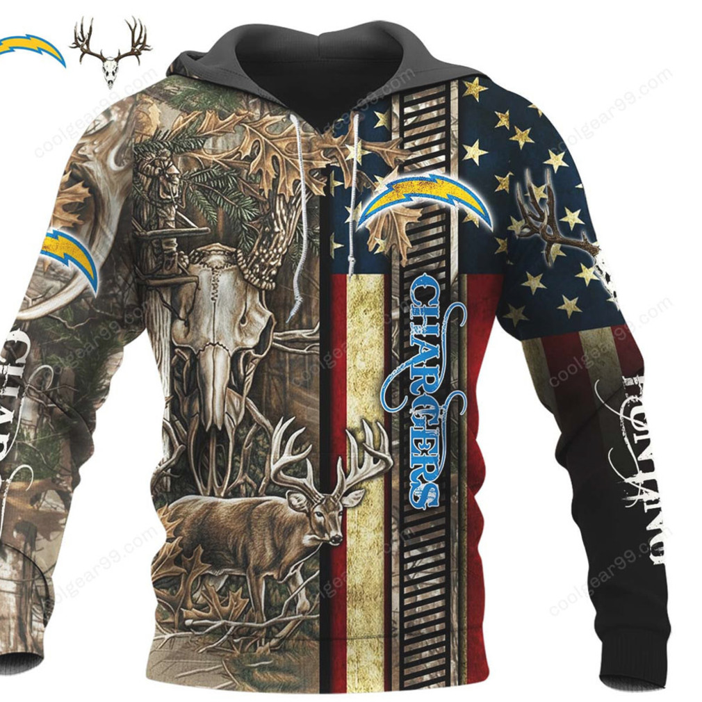 NFL Los Angeles Chargers All Over Print 3D Hoodie USA Flag Camo Realtree Hunting