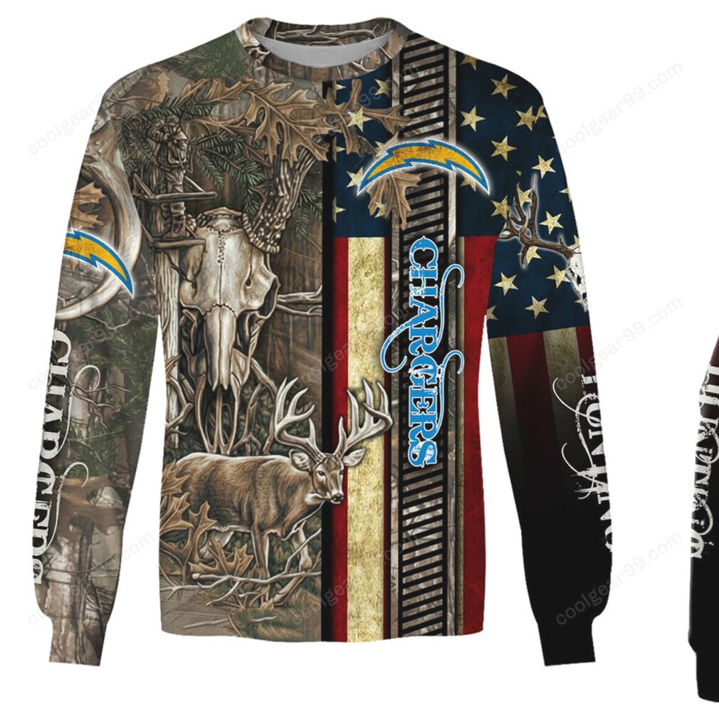 ()NFL Los Angeles Chargers All Over Print 3D Hoodie USA Flag Camo Realtree Hunting, V-neck, Sweater Hoodie and Long Sleeve tee