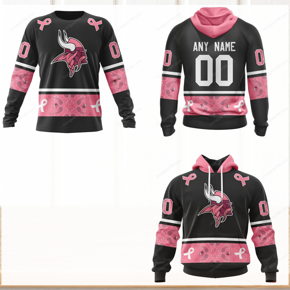 I have been a Viking fan since the early sixties when I spent a week living and eating with the Van Brocklin-coached teams in Bemidji during my senior year in high school. Since then, I have come to know that many of my former heroes who wore those early NFL Minnesota Vikings In October We Wear Pink Personalized Apparel hoodie have suffered grievous injuries due to their careers. Linebacker Fred McNeill was the first former Viking whose CTE-induced death made national news. Later, I had a student who tearfully told me of the decline and early CTE death of her grandfather, Wally Hilgenberg, who was also one of those iconic Vikings.