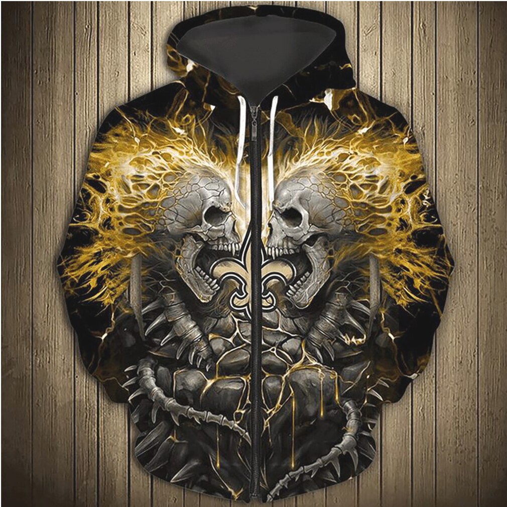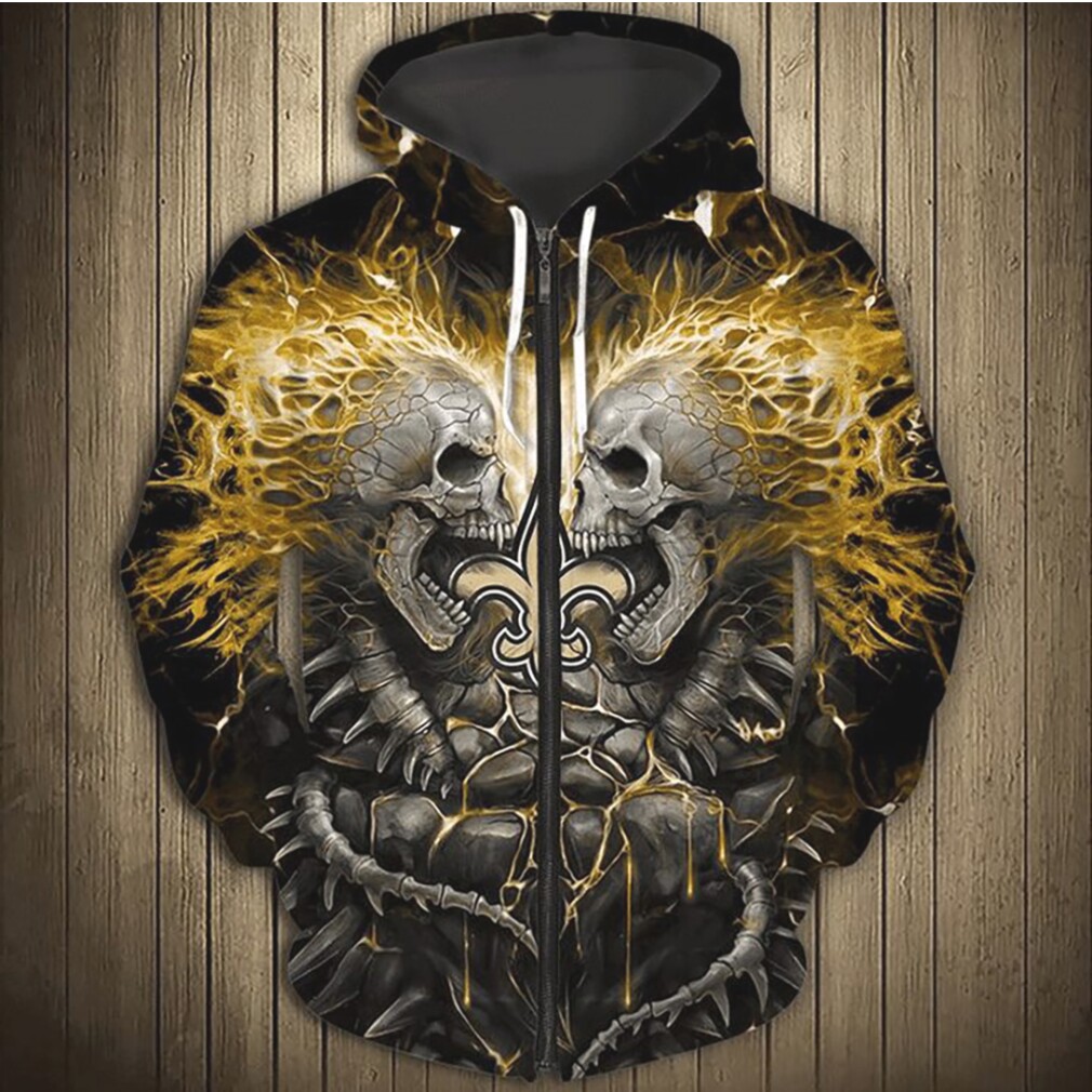 ▶️ About NFL New Orleans Saints Electric Skull Zip Up Hoodie – 3D T-Shirt