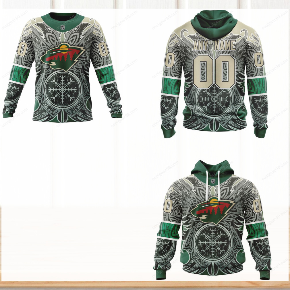 ()NHL Minnesota Wild Custom Name & Number Viking Print Apparel Hoodie, V-neck, Sweater Hoodie and Long Sleeve tee