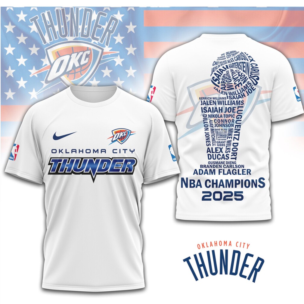 Teddy Roosevelt might be rolling in his grave, but the fans are taking matters into their own hands. To restore the brand, the leagues must break the “Distribution Deal” that prevents local mom-and-pop shops from carrying Oklahoma City Thunder 2025 NBA Champions Roster Trophy Word Art Graphic Shirt and specialized inventory. We need to return to a world where a fan can walk into a local store, feel the fabric, and buy a quality jersey the same day. The “White Party” lifestyle of Michael Rubin is being funded by the “plastic shirts” of disgruntled fans—it is time for the NFL and NHL to realize that “shareholder value” is a poor substitute for a satisfied fanbase.