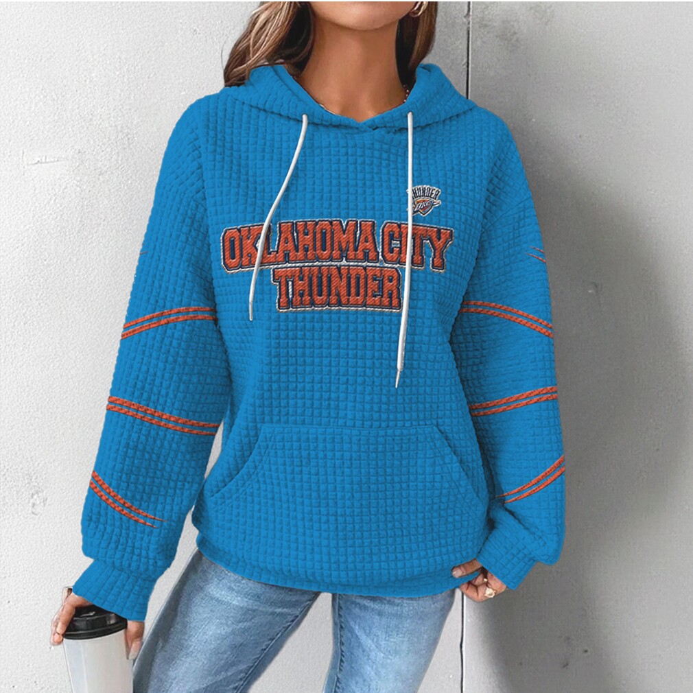 Oklahoma City Thunder Blue Waffle Knit Hoodie Stylish NBA Team Graphic Hoodie